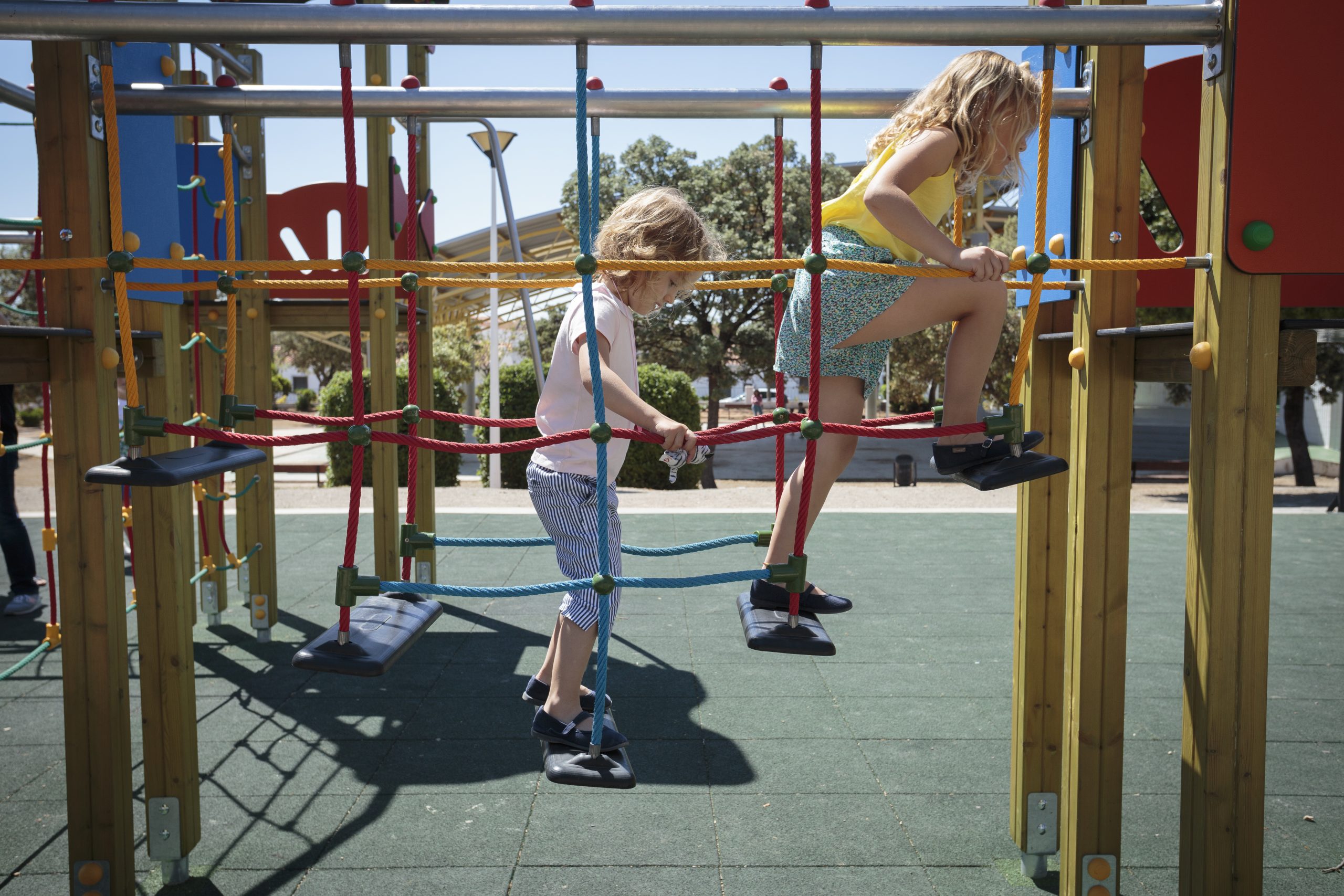- Con juegos fabricados con madera certificada FSC o PEFC, plástico reciclado o acero inoxidable, que ofrecen durabilidad y menor impacto ambiental, como nuestra línea Robinia.